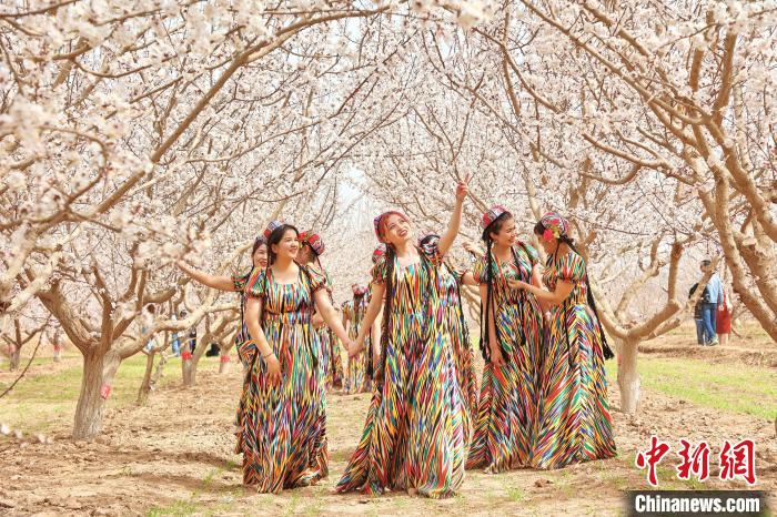 杏花节上各族群众载歌载舞。 吴乐 摄