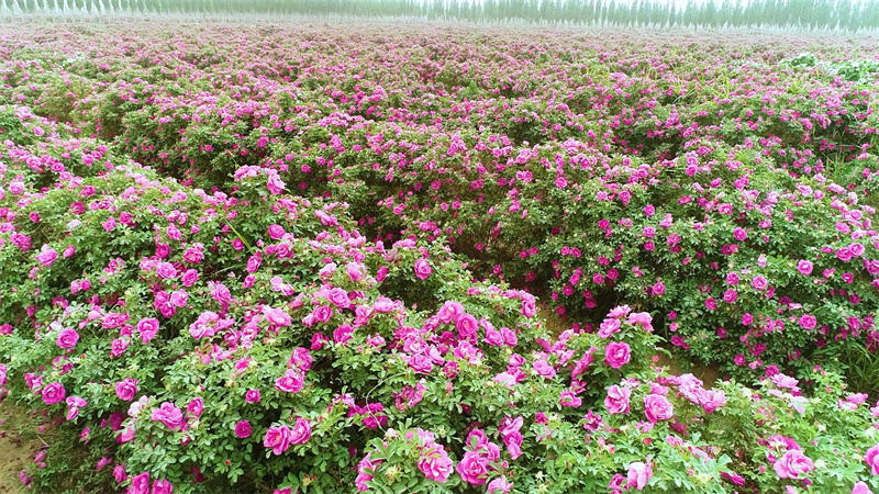 在和田地区于田县沙产业实验基地,连片的中草药和玫瑰迎风生长。2024年11月28日,随着最后一颗玫瑰花苗木的下种,塔克拉玛干沙漠“锁边”工程在奥依托格拉克乡顺利“合龙”,其边缘生态恢复与治理也迈入新阶段。