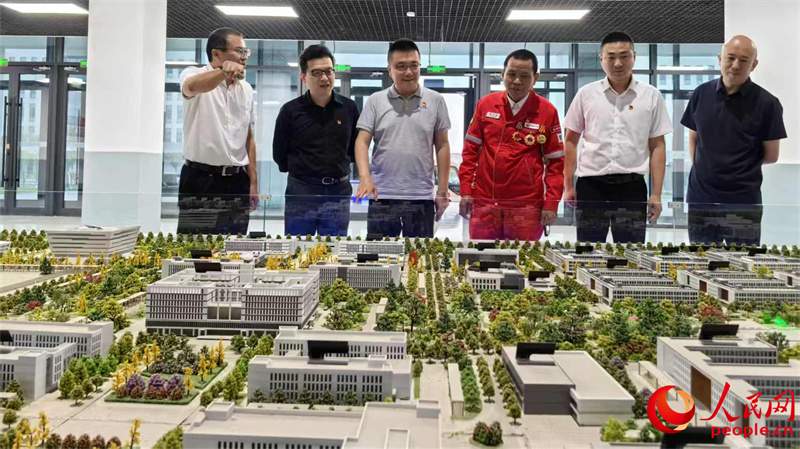 新疆工业学院党委常委、副院长侯志军(左一)向中国工人大思政课・新疆篇宣讲团成员介绍学校情况。人民网记者 陈新辉摄