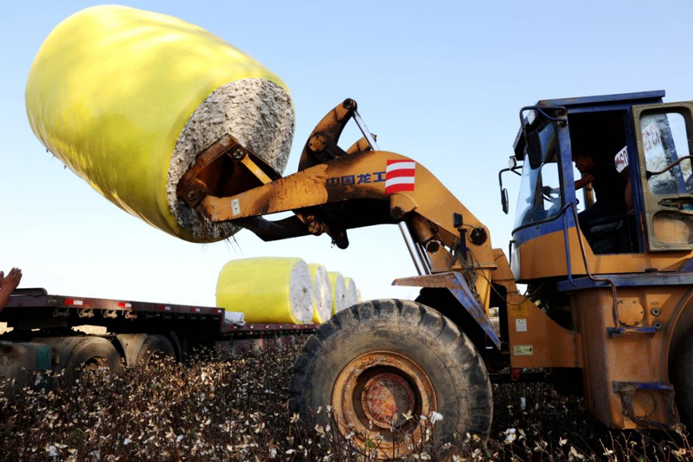 在昌吉市榆树沟镇,今年7.5万亩棉田迎来采收期。走进该镇前进村的棉田,一眼望去,雪白的棉絮在阳光下格外醒目,大型采棉机穿梭其间,伴随着轰鸣声完成采摘、收集作业,随即,1个重达2吨左右的“大金蛋”从采棉机滚落地面,机械化采收的忙碌景象扑面而来。