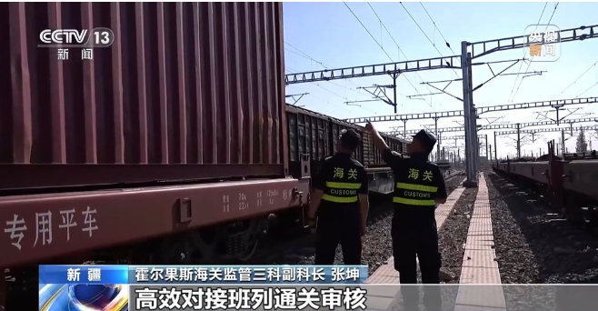 霍尔果斯海关监管三科副科长 张坤:提供7×24小时通关服务,设立中欧班列服务专窗,根据货主需求制定个性化服务,建立“优先编组+快速验放”绿色通道,高效对接班列通关审核、优先查验、换装放行等环节,不断提升班列运输效率。