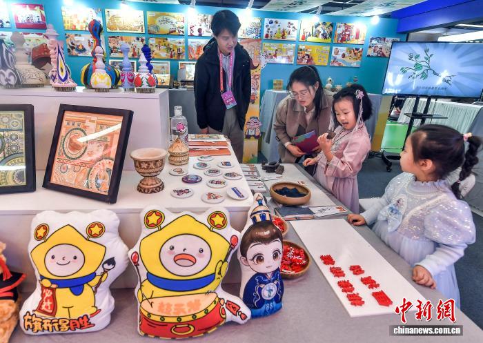 10月20日,新疆乌鲁木齐市,正在该市经济技术开发区(头屯河区)举办的第三届(2025)新疆动漫节吸引众多市民前来参观。本届动漫节吸引全国13个省区、新疆14个地(州、市)的50余所院校、近50家动漫企业及广大动漫爱好者参与其中。图为小朋友体验拓印和拼字互动游戏。中新社记者 刘新 摄