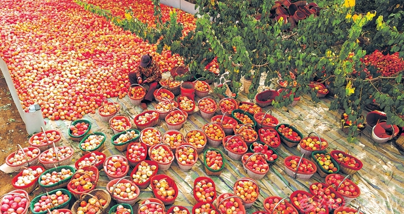 今年,阿拉尔市种植的14万亩苹果全部按照国家现代绿色农业标准种植管理,目前已进入成熟、采摘期,将销往疆内外及中亚、西亚市场。孙国权摄
