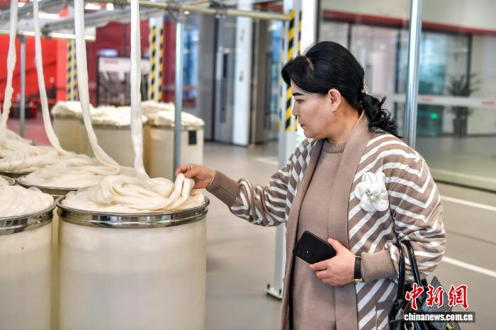 11月4日,新疆乌鲁木齐市,来自乌兹别克斯坦的嘉宾在一家企业参观访问,了解智能化纺织成套设备的生产、研发、销售流程。第十二届中国-中亚合作论坛将于11月6日在乌鲁木齐市开幕,各国参会嘉宾陆续抵达。中新社记者 刘新 摄