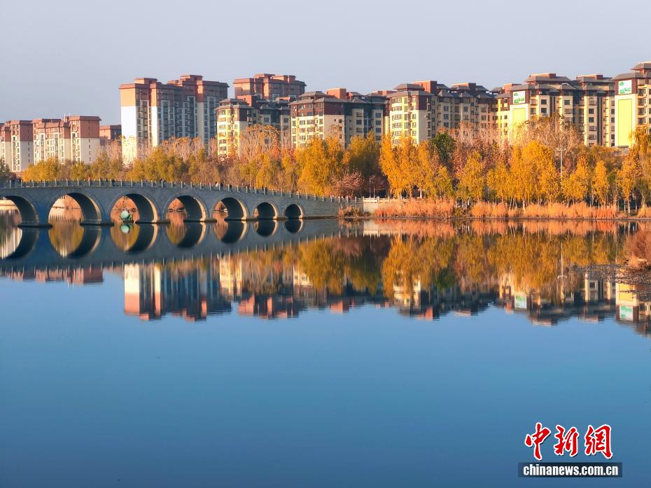 初冬,新疆阿克苏市多浪河沿岸换上金黄盛装,勾勒出“城在景中、人在画中”的诗意图景,犹如一幅“流动画卷”。历经十余年生态治理,曾经尘土飞扬的小水沟已蝶变为国家4A级景区。(王小军 摄)