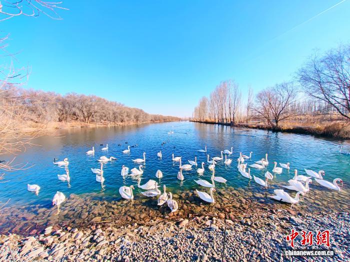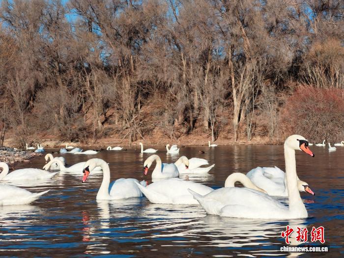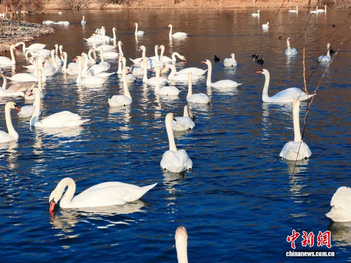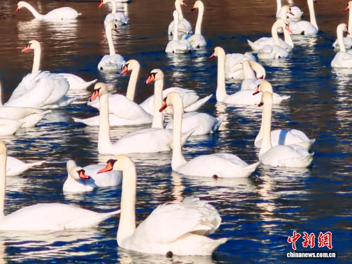 11月27日,冬日的新疆伊宁县天鹅泉景区湖面上,数百只栖息越冬天鹅嬉戏游弋,并不时掠水低飞,吸引游客观看。历经32年生态守护,景区天鹅栖息区从180亩扩至580亩,2024年天鹅数量峰值达876只。王小军 摄