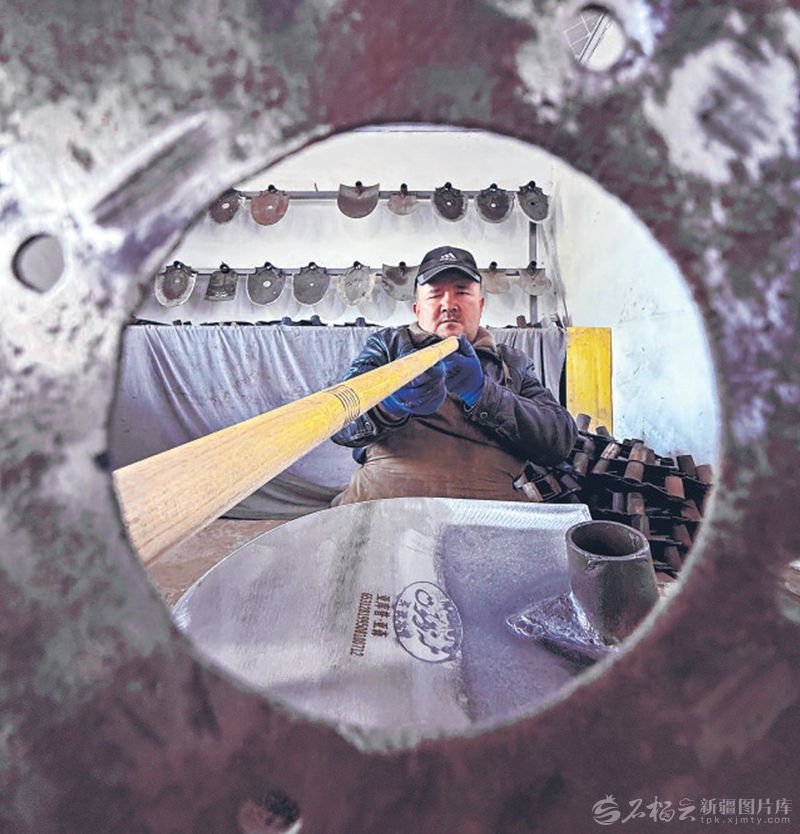 12月2日,艾买提·亚森的徒弟在煅烧坎土曼。