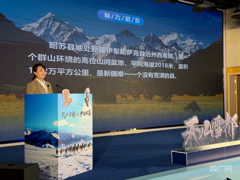 推介会的大屏幕上,天马踏雪奔腾,玉湖蓝冰凝翠似琉璃秘境……这段4分钟的冰雪旅游宣传片震撼亮相,全方位展现了昭苏“天山雪都”的独特自然禀赋与多元业态魅力。