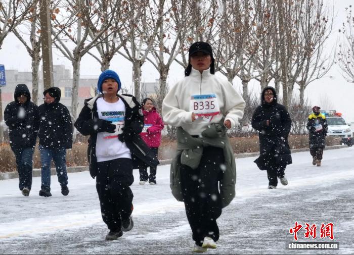 2026年元旦,新疆生产建设兵团第十四师昆玉市在奥林匹克生态体育公园举办“迎新年·奔向新征程”全民健身健康跑活动。当日,在雪花纷飞的跑道上,400余名跑步爱好者以奔跑的姿态迎接新年第一场雪。张芳军 摄