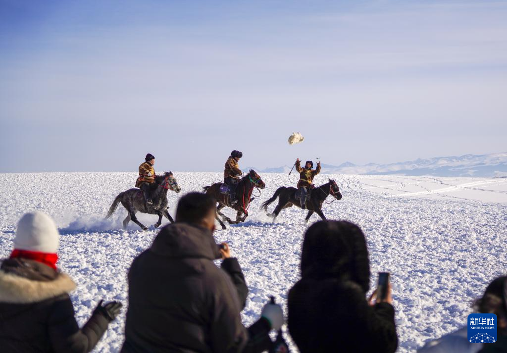 这是1月3日在新疆昭苏湿地公园拍摄的传统民俗“叼羊”表演。新华社记者 徐宏岩 摄