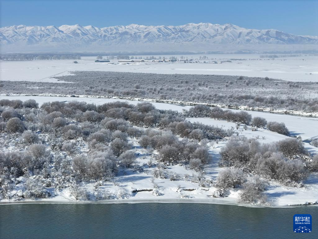 这是1月3日拍摄的新疆昭苏湿地公园一角(无人机照片)。新华社记者 胡虎虎 摄