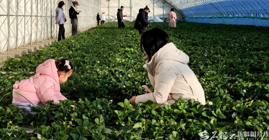 2026年1月1日,家长带着孩子在乌鲁木齐县全季草莓采摘园大棚里采摘草莓。天山网-新疆日报记者 杨斌摄