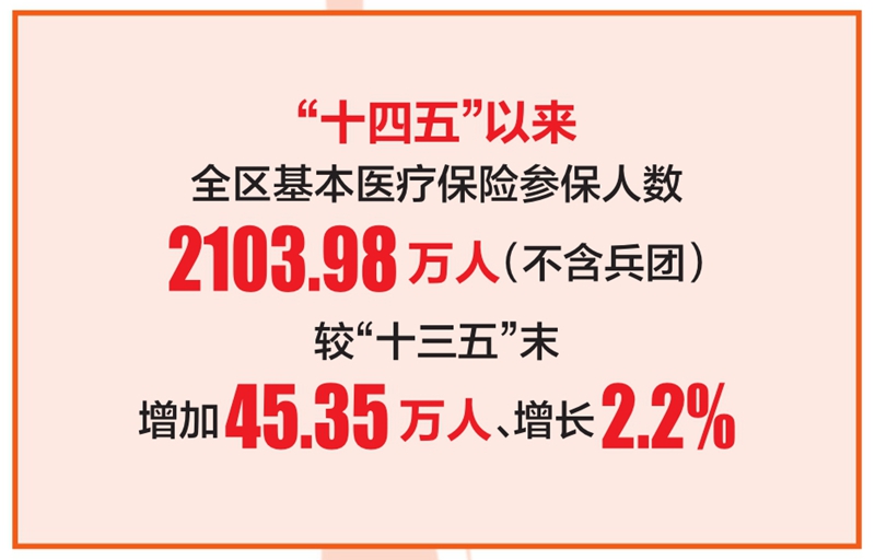 聚焦全民覆盖目标,持续夯实参保根基。参保是享受医保待遇的前提,自治区医保局主动适配人口流动和就业形态多样化新形势,变“人找政策”为“政策找人”,全力推进全民参保、应保尽保。建立精准扩面长效机制,建成并完善“一人一档”全民参保数据库,精准识别未参保和中断缴费人员,为精准动员提供数据支撑,其中克孜勒苏柯尔克孜自治州医保局《马背医保》创新案例,获评中央和国家机关工委“第五届党建创新成果展示交流活动”优秀案例。破除参保政策壁垒,全面取消城乡居民参保户籍限制,落实持居住证参保政策,完善灵活就业人员、农民工等新就业形态劳动者参保举措,优化参保关系转移接续流程,明确由失业保险基金为领取失业保险金人员代缴职工基本医保费。优化筹资机制与结构,遵循“以收定支、收支平衡、略有结余”原则,加强宣传引导提升个人参保缴费意识。“十四五”以来,全区基本医疗保险参保人数达2103.98万人(不含兵团),较“十三五”末增加45.35万人、增长2.2%;职工医保参保人数占比逐年提升,参保结构持续优化,制度稳定性和可持续性显著增强。