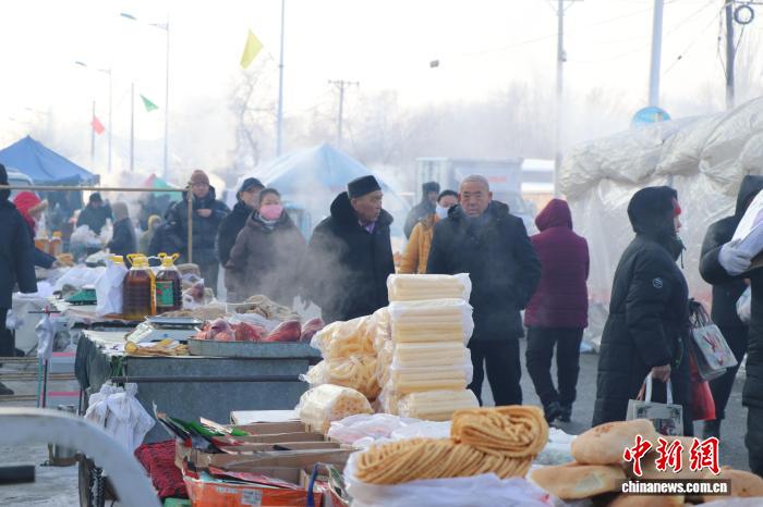 1月19日,乌鲁木齐市米东区羊毛工镇一年一度的年货节启动。今年当地年货节创新融合直播带货与非遗展演,为传统年货节注入新活力。年货节现场设置了年货一条街,琳琅满目的新疆特色干果、冻货海鲜和糖果糕点等吸引众多民众购买。同时,年货节期间还通过举行舞狮、舞龙展演活动来吸引客流,并鼓励村民参与“线上乡村集市”网络直播,在“家门口”创业增收。图为村民选购年货。苟继鹏 摄