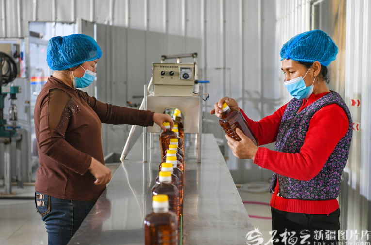 2月7日,策勒县和滇红酒业有限公司员工在生产石榴红酒产品。