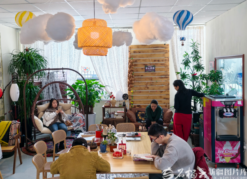 2月27日,居民在乌鲁木齐市天山区赛马场街道赛马场西社区邻里中心设立的咖啡厅休息。