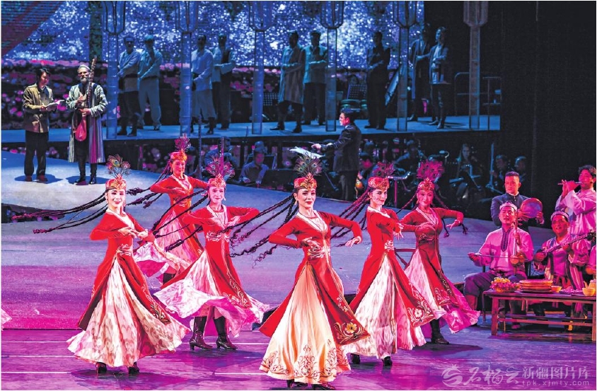 石榴云/新疆日报记者朱成晓报道:3月19日晚,第四届新疆文化艺术节在新疆艺术剧院木卡姆艺术团剧场拉开帷幕。本届文化艺术节以“文化艺术的盛会,人民大众的节日”为主题,开幕式上演了歌剧《木卡姆恋歌——万桐书》,通过艺术化表达,深情讲述音乐学家万桐书保护传承木卡姆艺术的感人故事。