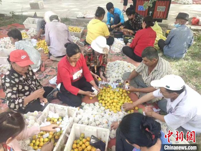 中新网乌鲁木齐6月27日电 (朱景朝 张家伟)27日,今年首批新疆英吉沙杏借助山东援疆搭建的“大仓东移”渠道,销往东部省市。
