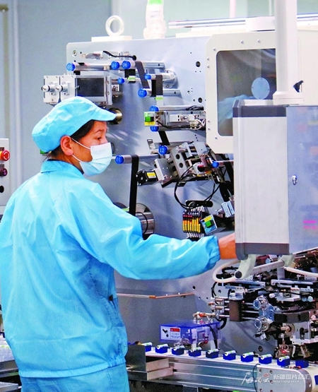 7月11日,新疆九疆新能源科技有限公司员工在锂电池生产线作业。喀什经济开发区把锂电产业作为“一体两翼”主导产业、开发区发展的“一号工程”重点推进,全力打造中国向西开放、区域经济新的增长点。 陈朝摄