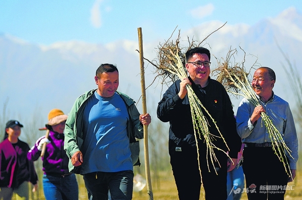 4月22日,工人在查看肉苁蓉长势。自2003年起,且末县利用丰富的沙生资源培育发展肉苁蓉种植,走出了一条具有沙漠特色的产业发展之路,实现了生态效益和经济效益双赢。截至目前,该县肉苁蓉种植面积已达9万亩。 苏鑫摄