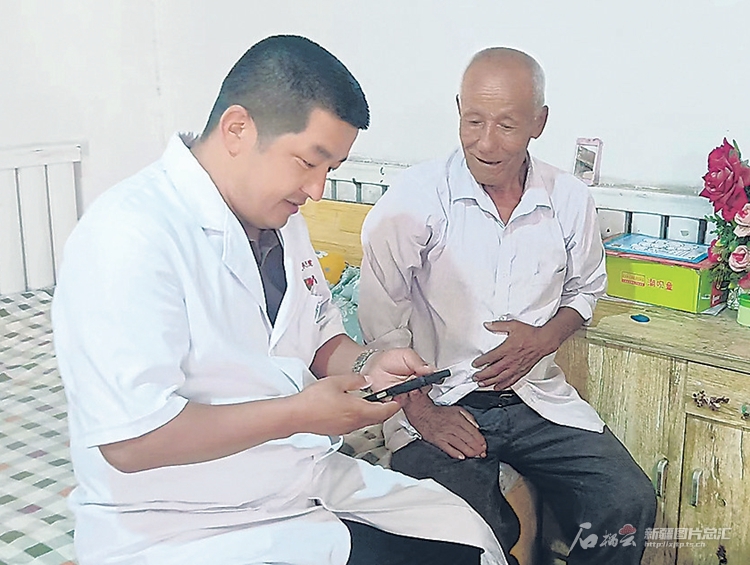 7月17日,库车市齐满镇阿曼托格拉克村村医玉素甫·莫明上门帮助群众办理异地就医备案登记。阿布力克木·艾合提摄