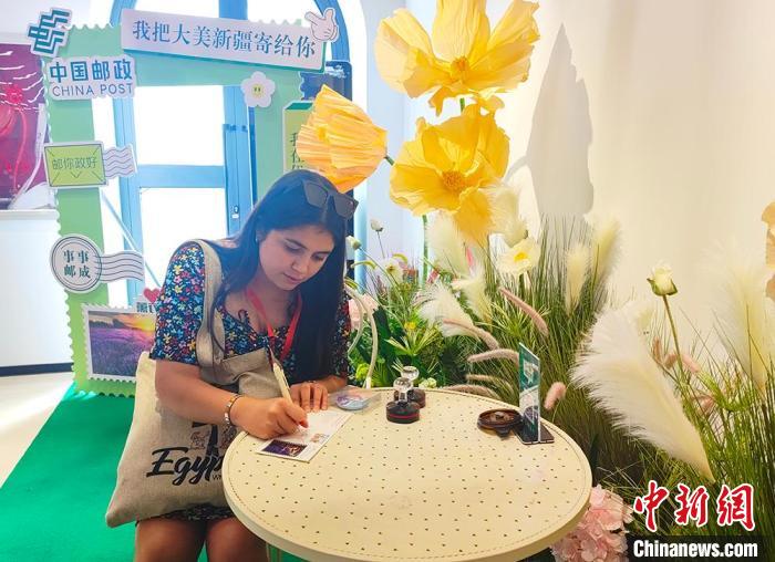 中新网乌鲁木齐9月4日电 (古丽米娜·艾力哈孜)在新疆伊犁哈萨克自治州伊宁县天山花海景区,土耳其德米罗伦通讯社国际部编辑萨拉·泽赫拉·乌兹贝(下称“萨拉”),特意选了一张薰衣草花田图案的明信片,寄给自己的母亲。“明信片的美景,就是这里2万多亩薰衣草花田。”