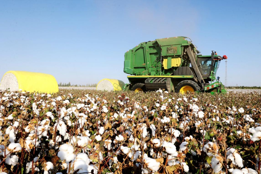 在昌吉市榆树沟镇,今年7.5万亩棉田迎来采收期。走进该镇前进村的棉田,一眼望去,雪白的棉絮在阳光下格外醒目,大型采棉机穿梭其间,伴随着轰鸣声完成采摘、收集作业,随即,1个重达2吨左右的“大金蛋”从采棉机滚落地面,机械化采收的忙碌景象扑面而来。