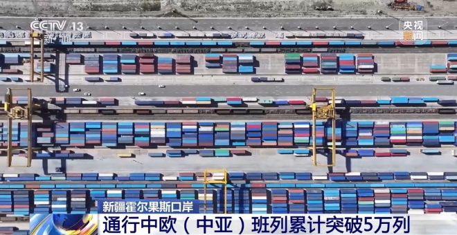 11日,一列满载电子产品、机电设备、日用百货等货物的中欧班列从霍尔果斯铁路口岸驶出,开往波兰马拉舍维奇,标志着经霍尔果斯铁路口岸通行中欧(中亚)班列数量累计突破5万列。