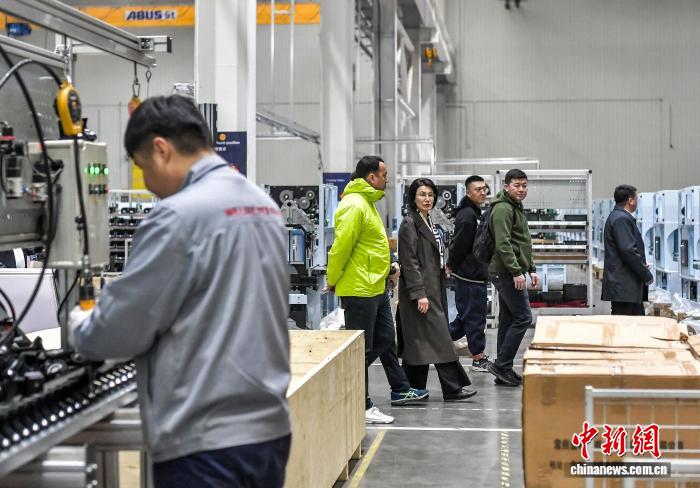 11月4日,新疆乌鲁木齐市,来自乌兹别克斯坦的嘉宾在一家企业参观访问,了解智能化纺织成套设备的生产、研发、销售流程。第十二届中国-中亚合作论坛将于11月6日在乌鲁木齐市开幕,各国参会嘉宾陆续抵达。中新社记者 刘新 摄