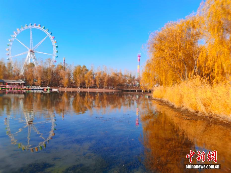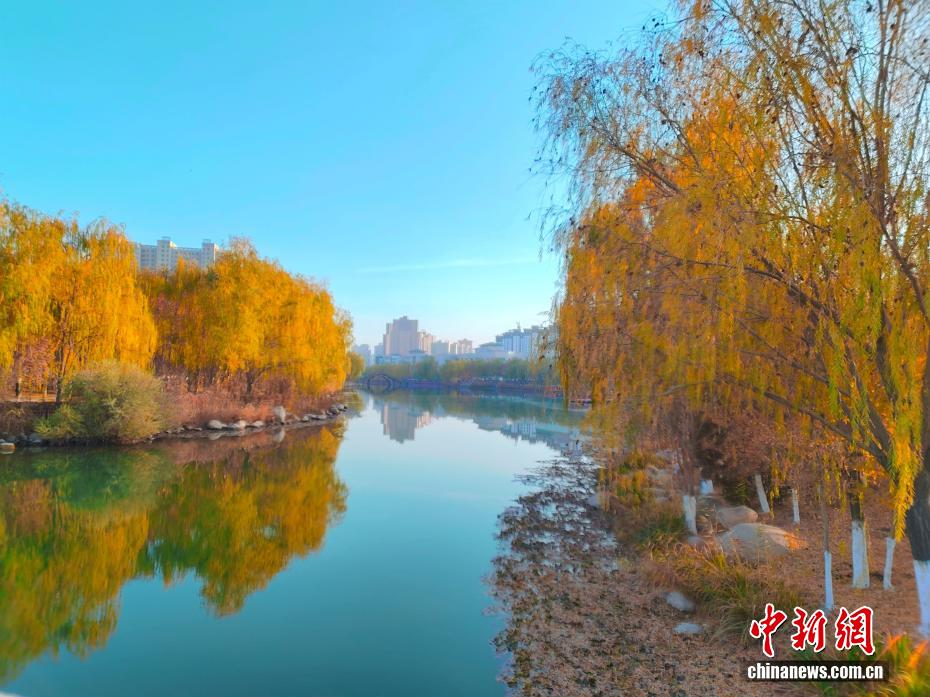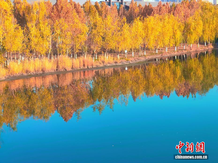 初冬,新疆阿克苏市多浪河沿岸换上金黄盛装,勾勒出“城在景中、人在画中”的诗意图景,犹如一幅“流动画卷”。历经十余年生态治理,曾经尘土飞扬的小水沟已蝶变为国家4A级景区。(王小军 摄)