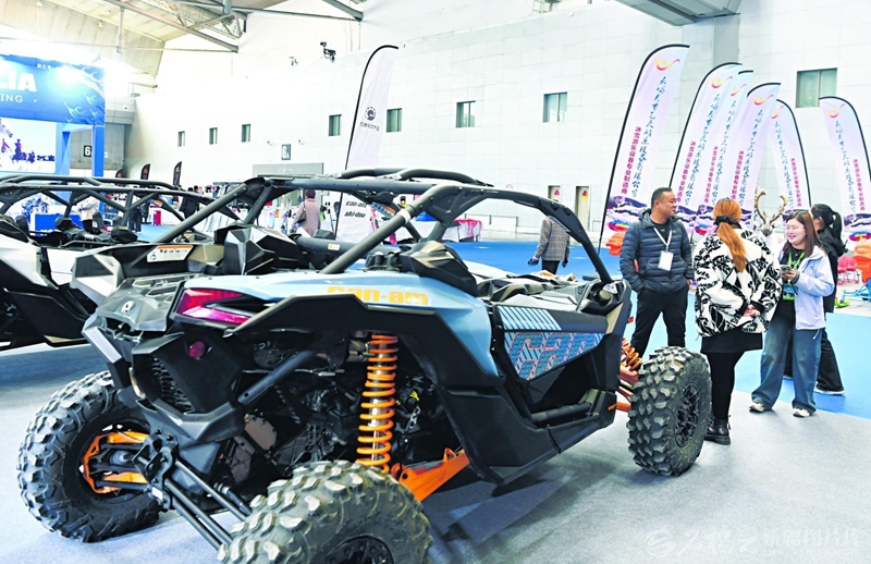 11月14日,参展商给观众介绍庞巴迪雪地车。石榴云/新疆日报记者汤永摄