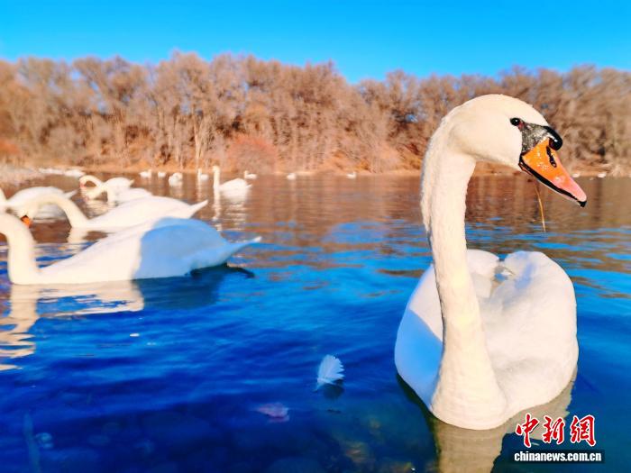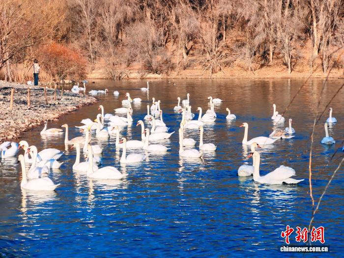11月27日,冬日的新疆伊宁县天鹅泉景区湖面上,数百只栖息越冬天鹅嬉戏游弋,并不时掠水低飞,吸引游客观看。历经32年生态守护,景区天鹅栖息区从180亩扩至580亩,2024年天鹅数量峰值达876只。王小军 摄