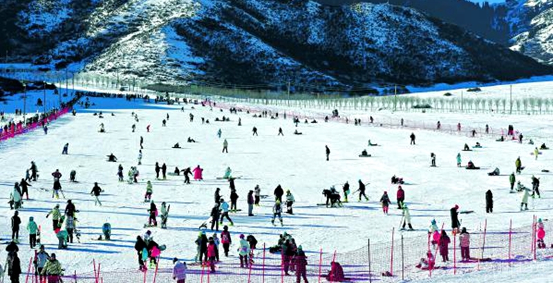 12月7日,众多市民和游客在乌鲁木齐白云国际滑雪场滑雪。 石榴云/新疆日报记者李雄心摄