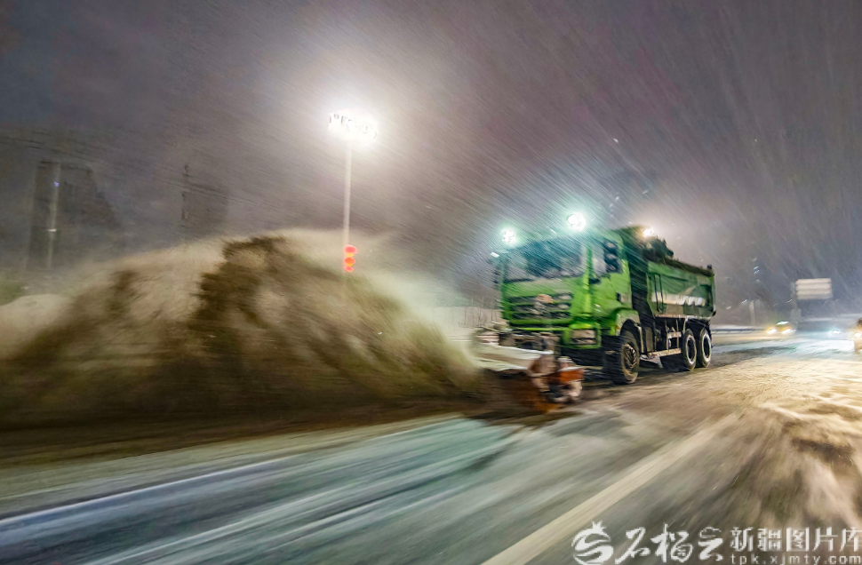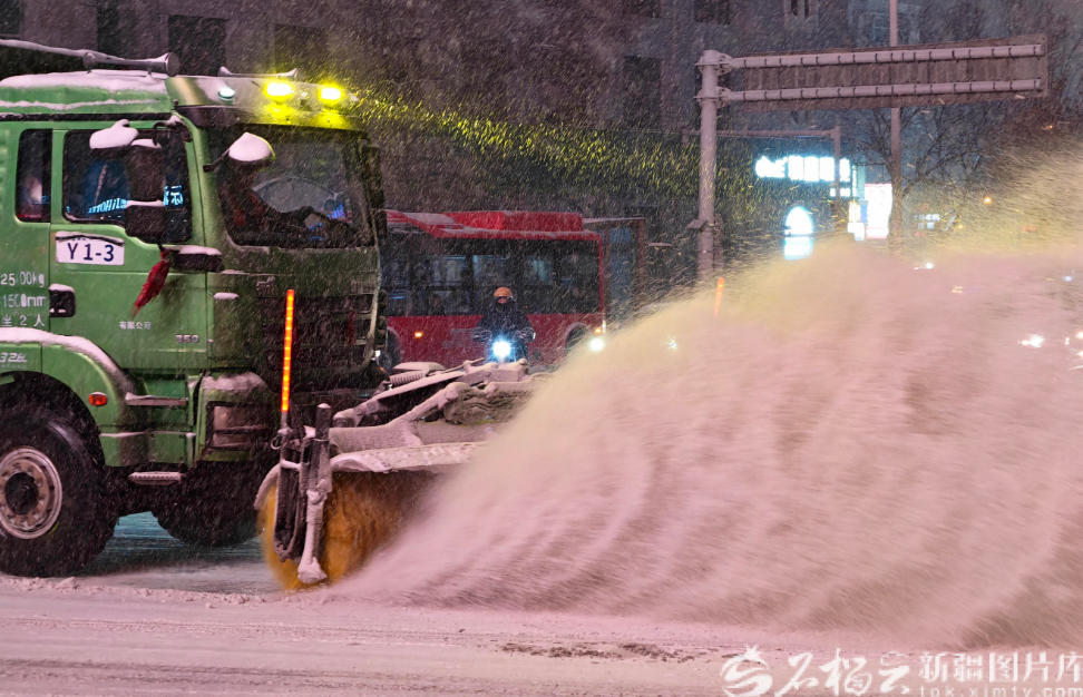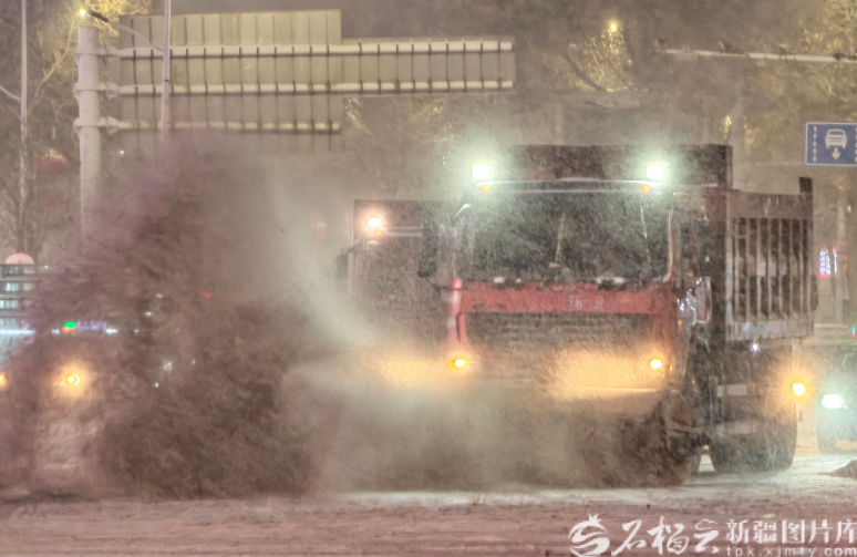 天山网-新疆日报讯(记者蔡增乐摄影报道)12月10日,受强冷空气影响,乌鲁木齐市迎来降雪降温天气,城区普遍出现积雪,给市民出行带来不便。为确保道路安全畅通,环卫部门迅速启动应急响应,组织清雪车辆和人员连夜作业,全力开展“即下即清、雪停路净”行动。