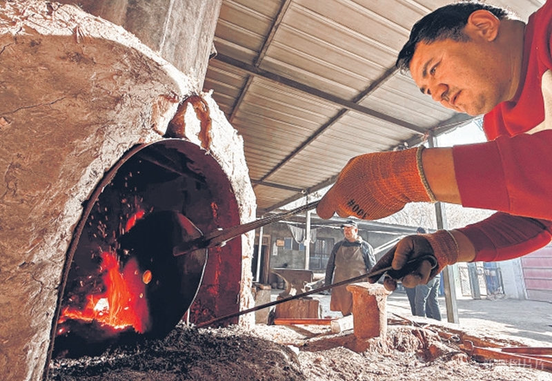 12月2日,艾买提·亚森的徒弟在煅烧坎土曼。