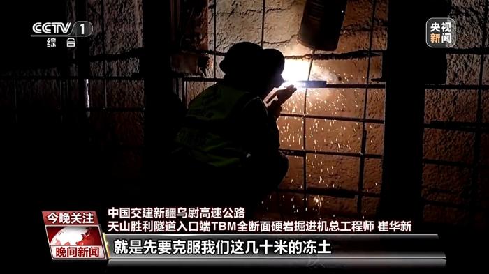 中国交建新疆乌尉高速公路天山胜利隧道入口端TBM全断面硬岩掘进机总工程师 崔华新:现在我们所处的位置,是我们竖向掘进机开挖完成之后,我们竖井的最后一道工序也就是二衬。随着我们的施工进度不断提高,我们经历黑暗的时间也是越来越短的。