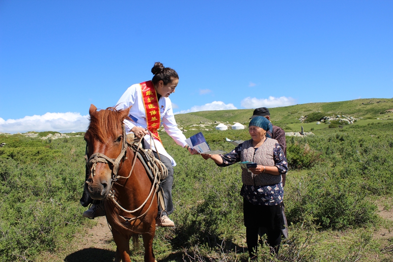 哈巴河县医疗保障局工作人员在牧区开展医保政策宣讲活动(2025年6月18日摄)。