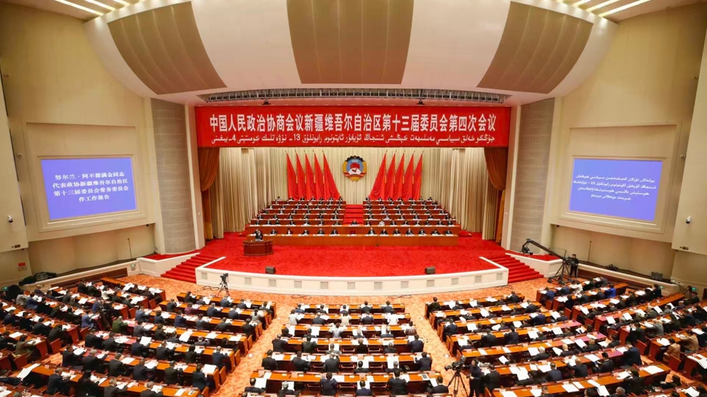 大会开幕前,自治区政协十三届四次会议“委员通道”开启。6名委员分3组依次走到话筒前,面对媒体,畅谈建议心声,讲述新疆变化,传递发展强音。10时30分,大会在雄壮的国歌声中开幕。会场内涌动着凝聚共识、参政议政的热情。自治区政协主席努尔兰·阿不都满金代表自治区政协十三届常委会,向大会报告工作。