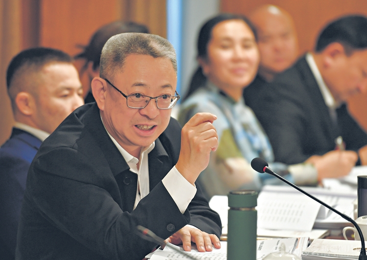 1月26日下午,文化艺术界、新闻出版界委员分组审议自治区政协常委会工作报告和提案工作情况的报告。王洁委员就加大文艺宣传到基层的力度等内容发言。石榴云/新疆日报记者李雄心摄
