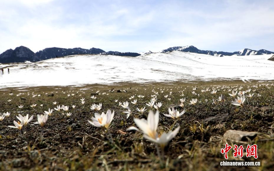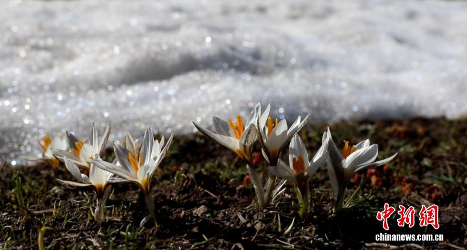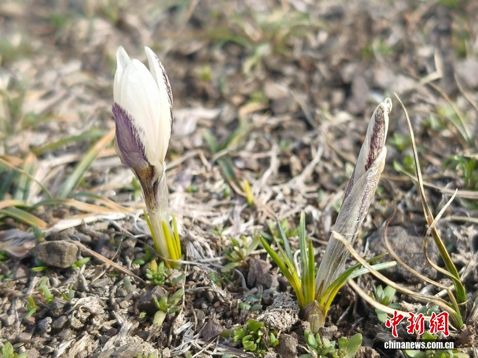 雨水已过,惊蛰将至。随着气温回暖,位于新疆伊犁河谷的察布查尔县孙扎齐牛录镇郎喀村的山地迎风坡,国家二级保护植物白番红花近日陆续顶冰盛开。白番红花因具有顶破未消融冰雪绽放的特性而被称为“顶冰花”,今年当地的“顶冰花”比往年提前半个月开放,在春节假日期间吸引不少游客前来游玩赏花。(察布查尔县委宣传部供图)