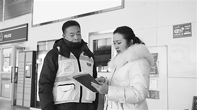 在塔城千泉机场,闵晓青(右)与工作人员面对面交流。受访者供图