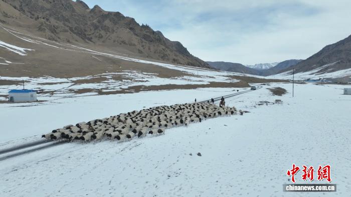 中新网乌鲁木齐3月16日电 (周冰 申凯龙 黎文辉)随着气温持续回升,天山深处的新疆和静县巴音布鲁克草原冰雪渐融,一年一度的春季牲畜转场如期启动,成群结队的牲畜沿着牧道向春季牧场进发。