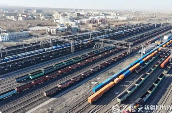 3月22日,阿拉山口铁路口岸,一列满载着高附加值电子产品、汽车零配件的中欧班列从阿拉山口站编组一场鸣笛启程,车轮滚滚向西,穿越国境线,奔赴欧洲腹地。