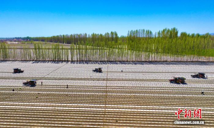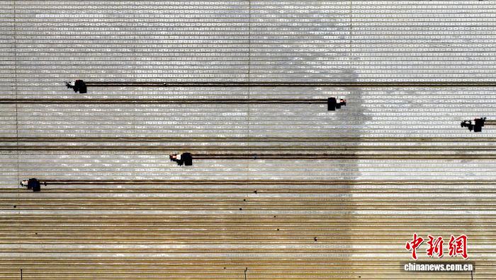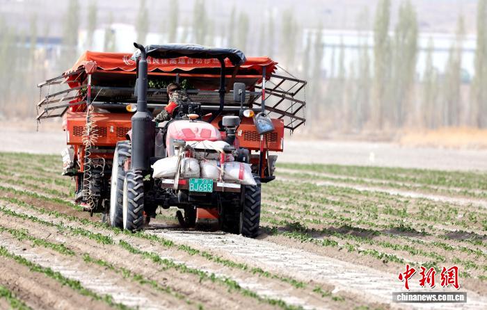 时下,新疆焉耆垦区22万亩辣椒移栽全面展开,田间地头一派繁忙景象,搭载北斗导航系统的辣椒移栽机来回穿梭、精准作业,打孔、栽苗、覆土、压实等工序高效连贯。白克斌 摄