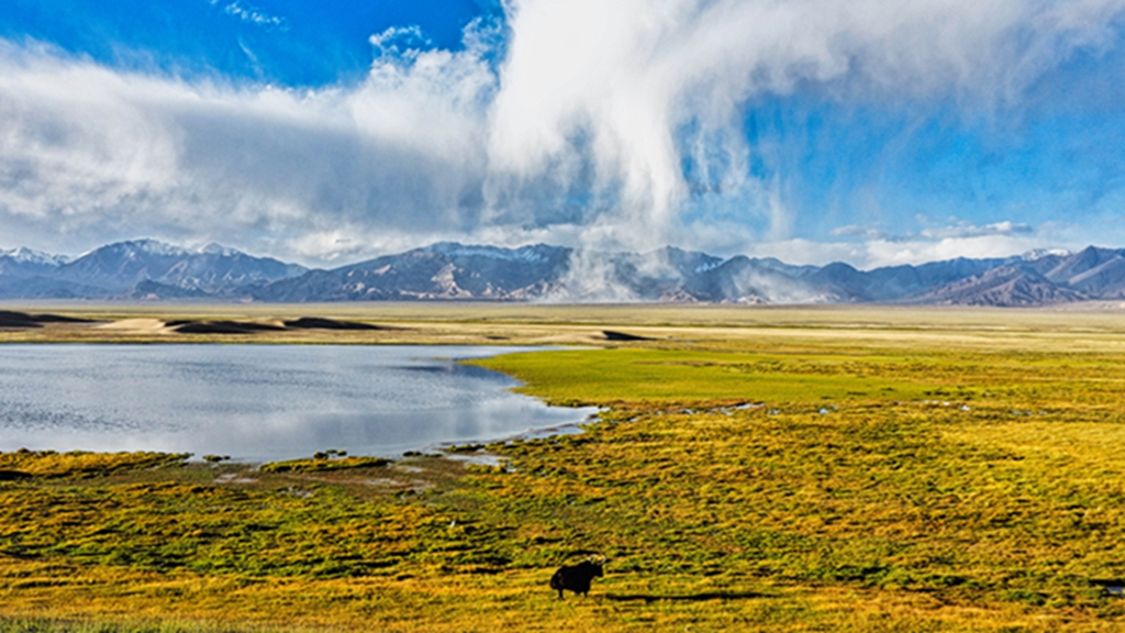 “沙漠、湖泊、雪山同框,野牦牛在沙海间驰骋,这样的景观恢宏壮丽。”孙布尔感慨道。