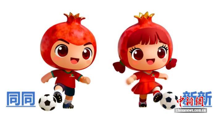 赛事吉祥物以石榴为原型,打造“同同”“新新”一对形象。饱满红润的石榴头冠配金色果蒂,身着球衣、脚穿球鞋,呈现灵动控球姿态。寓意“石榴籽紧抱”的民族团结,传递绿茵逐梦的体育精神。(完)