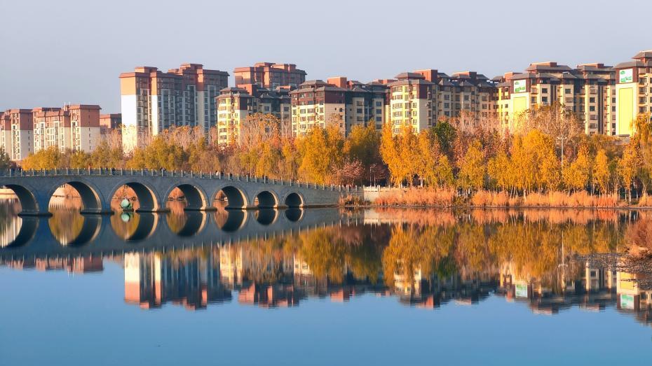 初冬新疆阿克苏市多浪河如“流动画卷”