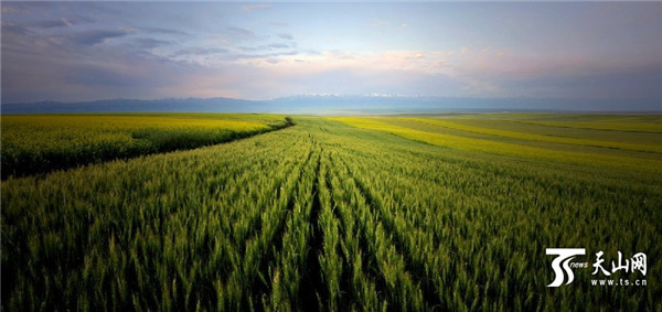 盛夏七月,天山脚下的新疆昭苏大草原,一望无际的油菜花怒放,蓝天白云、雪山、黄花,大美无言。
