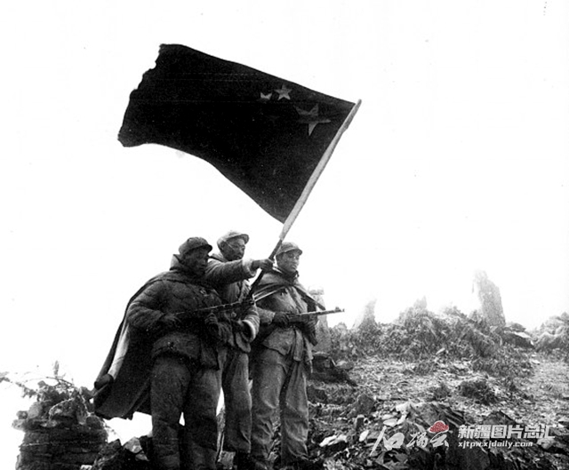 入藏先遣连战士把五星红旗插上喜马拉雅山。