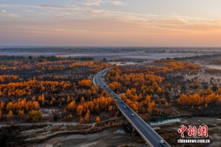 新疆莎车县叶尔羌河流域胡杨林迎来最佳观赏期